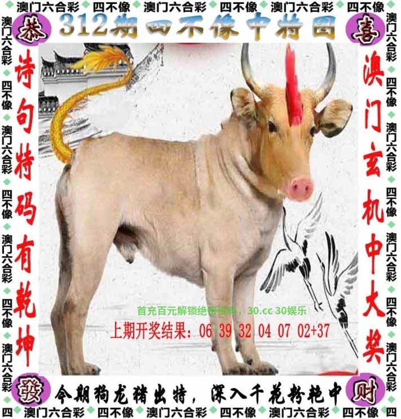 | 313期:今期牛鸡狗出特,岘亭风起花千片开:龙38准 ②合单+小数 |